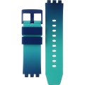 Diese Swatch Uhr hat ein Kunststoff / Harz Gehäuse mit einem Durchmesser von 47 mm und ist mit einem Armband aus Kautschuk versehen. In der Uhr arbeitet ein ETA Uhrwerk. Das Glas der Uhr besteht aus Acryl - Glas.