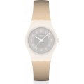 Dieses Swatch Uhrarmband ist aus silikon gefertigt und wird mit stahlstifte an der Uhr befestigt. Das Band hat eine Breite von 12 mm und wird mit einer dornschließe geschlossen. Das Uhrenarmband hat keine gerade Halterung, was bedeutet, dass dieses Band nur für die unten aufgeführten Uhren geeignet ist.
