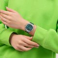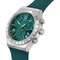 Diese Swatch Uhr hat ein Edelstahl Gehäuse mit einem Durchmesser von 43 mm und ist mit einem Armband aus Kautschuk versehen. In der Uhr arbeitet ein ETA Uhrwerk. Das Glas der Uhr besteht aus Acryl - Glas.