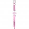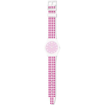 Dieses Swatch Uhrarmband ist aus silikon gefertigt und wird mit stahlstifte an der Uhr befestigt. Das Band hat eine Breite von 17 mm und wird mit einer dornschließe geschlossen. Das Uhrenarmband hat keine gerade Halterung, was bedeutet, dass dieses Band nur für die unten aufgeführten Uhren geeignet ist.