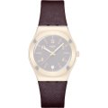 Diese Swatch Uhr hat ein Edelstahl Gehäuse mit einem Durchmesser von 33 mm und ist mit einem Armband aus Leder versehen. In der Uhr arbeitet ein ETA Uhrwerk. Das Glas der Uhr besteht aus Acryl - Glas.