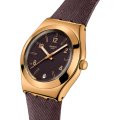 Diese Swatch Uhr hat ein Edelstahl Gehäuse mit einem Durchmesser von 33 mm und ist mit einem Armband aus Leder versehen. In der Uhr arbeitet ein ETA Uhrwerk. Das Glas der Uhr besteht aus Acryl - Glas.