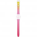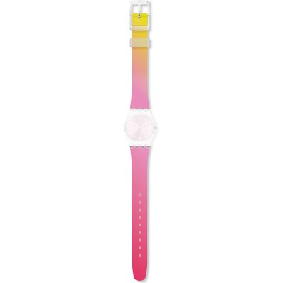 Dieses Swatch Uhrarmband ist aus silikon gefertigt und wird mit stahlstifte an der Uhr befestigt. Das Band hat eine Breite von 12 mm und wird mit einer dornschließe geschlossen. Das Uhrenarmband hat keine gerade Halterung, was bedeutet, dass dieses Band nur für die unten aufgeführten Uhren geeignet ist.