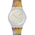 Dieses Swatch Uhrarmband ist aus silikon gefertigt und wird mit stahlstifte an der Uhr befestigt. Das Band hat eine Breite von 19.7 mm und wird mit einer dornschließe geschlossen. Das Uhrenarmband hat keine gerade Halterung, was bedeutet, dass dieses Band nur für die unten aufgeführten Uhren geeignet ist.