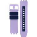 Dieses Swatch Uhrarmband ist aus silikon gefertigt und wird mit stahlstifte an der Uhr befestigt. Das Band hat eine Breite von 19.7 mm und wird mit einer dornschließe geschlossen. Das Uhrenarmband hat keine gerade Halterung, was bedeutet, dass dieses Band nur für die unten aufgeführten Uhren geeignet ist.