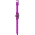 Diese Swatch Uhr hat ein Kunststoff / Harz Gehäuse mit einem Durchmesser von 25 mm und ist mit einem Armband aus Kautschuk versehen. In der Uhr arbeitet ein ETA Uhrwerk. Das Glas der Uhr besteht aus Acryl - Glas.