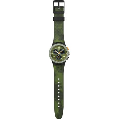 Diese Swatch Uhr hat ein Kunstharz Gehäuse mit einem Durchmesser von 42 mm und ist mit einem Armband aus Kautschuk versehen. In der Uhr arbeitet ein ETA Uhrwerk. Das Glas der Uhr besteht aus Acryl - Glas.