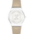 Dieses Swatch Uhrarmband ist aus leder gefertigt und wird mit stahlstifte an der Uhr befestigt. Das Band hat eine Breite von 19.6 mm und wird mit einer dornschließe geschlossen. Das Uhrenarmband hat keine gerade Halterung, was bedeutet, dass dieses Band nur für die unten aufgeführten Uhren geeignet ist.