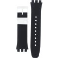 Dieses Swatch Uhrarmband ist aus silikon gefertigt und wird mit stahlstifte an der Uhr befestigt. Das Band hat eine Breite von 20.1 mm und wird mit einer dornschließe geschlossen. Das Uhrenarmband hat keine gerade Halterung, was bedeutet, dass dieses Band nur für die unten aufgeführten Uhren geeignet ist.