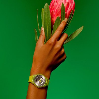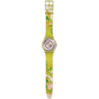 Diese Swatch Uhr hat ein Bio-Kunststoff Gehäuse mit einem Durchmesser von 33.7 mm und ist mit einem Armband aus Kautschuk versehen. In der Uhr arbeitet ein ETA Uhrwerk. Das Glas der Uhr besteht aus Acryl - Glas.