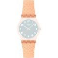 Diese Swatch Uhr hat ein Kunstharz Gehäuse mit einem Durchmesser von 25 mm und ist mit einem Armband aus Kautschuk versehen. In der Uhr arbeitet ein ETA Uhrwerk. Das Glas der Uhr besteht aus Acryl - Glas.