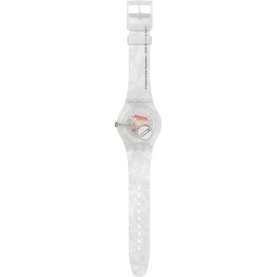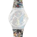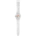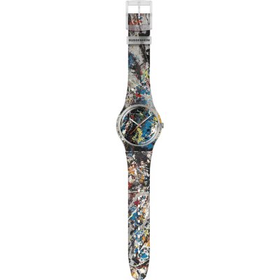 Diese Swatch Uhr hat ein Kunstharz Gehäuse mit einem Durchmesser von 41 mm und ist mit einem Armband aus Kautschuk versehen. In der Uhr arbeitet ein ETA Uhrwerk. Das Glas der Uhr besteht aus Acryl - Glas.
