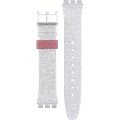 Dieses Swatch Uhrarmband ist aus silikon gefertigt und wird mit stahlstifte an der Uhr befestigt. Das Band hat eine Breite von 17 mm und wird mit einer dornschließe geschlossen. Das Uhrenarmband hat keine gerade Halterung, was bedeutet, dass dieses Band nur für die unten aufgeführten Uhren geeignet ist.