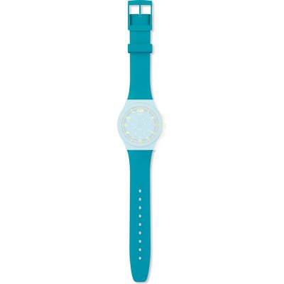 Dieses Swatch Uhrarmband ist aus silikon gefertigt und wird mit stahlstifte an der Uhr befestigt. Das Band hat eine Breite von 20.1 mm und wird mit einer dornschließe geschlossen. Das Uhrenarmband hat keine gerade Halterung, was bedeutet, dass dieses Band nur für die unten aufgeführten Uhren geeignet ist.