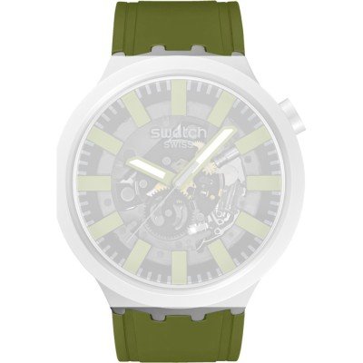 Dieses Swatch Uhrarmband ist aus kautschuk gefertigt und wird mit stahlstifte an der Uhr befestigt. Das Band hat eine Breite von 19.7 mm und wird mit einer dornschließe geschlossen. Das Uhrenarmband hat keine gerade Halterung, was bedeutet, dass dieses Band nur für die unten aufgeführten Uhren geeignet ist.