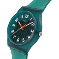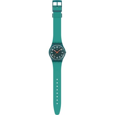 Diese Swatch Uhr hat ein Bio-Kunststoff Gehäuse mit einem Durchmesser von 34 mm und ist mit einem Armband aus Kautschuk versehen. In der Uhr arbeitet ein ETA Uhrwerk. Das Glas der Uhr besteht aus Acryl - Glas.