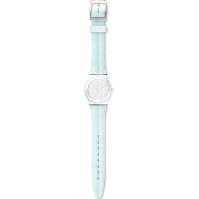 Dieses Swatch Uhrarmband ist aus silikon gefertigt und wird mit stahlstifte an der Uhr befestigt. Das Band hat eine Breite von 17 mm und wird mit einer dornschließe geschlossen. Das Uhrenarmband hat keine gerade Halterung, was bedeutet, dass dieses Band nur für die unten aufgeführten Uhren geeignet ist.