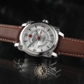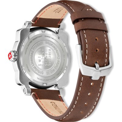 Die Uhr ist wasserdicht bis 10 ATM. Das bedeutet, dass die Uhr zum Schwimmen geeignet ist.. Die Uhr wird mit Swiss Military 3+2 geliefert.