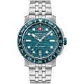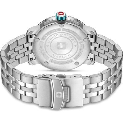 Diese Swiss Military Hanowa Uhr hat ein Edelstahl Gehäuse mit einem Durchmesser von 44 mm und ist mit einem Armband aus Edelstahl versehen. In der Uhr arbeitet ein Ronda Uhrwerk. Das Glas der Uhr besteht aus Sapphir - Glas.