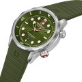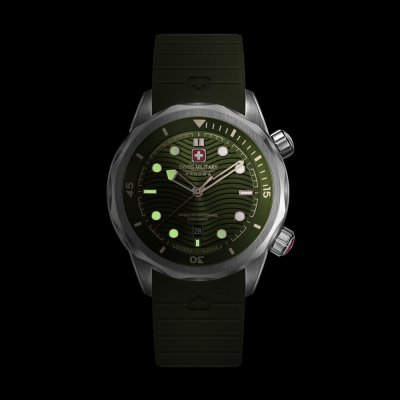 Diese Swiss Military Hanowa Uhr hat ein Edelstahl Gehäuse mit einem Durchmesser von 43 mm und ist mit einem Armband aus Kautschuk versehen. In der Uhr arbeitet ein Ronda Uhrwerk. Das Glas der Uhr besteht aus Sapphir - Glas.