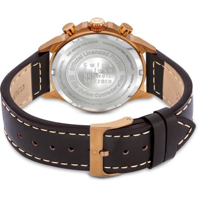 Diese Swiss Military Hanowa Uhr hat ein Edelstahl Gehäuse mit einem Durchmesser von 45 mm und ist mit einem Armband aus Leder versehen. In der Uhr arbeitet ein Ronda Uhrwerk. Das Glas der Uhr besteht aus Sapphir - Glas.