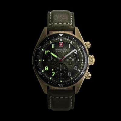 Die Uhr ist wasserdicht bis 10 ATM. Das bedeutet, dass die Uhr zum Schwimmen geeignet ist.. Die Uhr wird mit Swiss Military 3+2 geliefert.