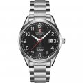 Diese Swiss Military Hanowa Uhr hat ein Edelstahl Gehäuse mit einem Durchmesser von 40 mm und ist mit einem Armband aus Edelstahl versehen. In der Uhr arbeitet ein STP Fossil Uhrwerk. Das Glas der Uhr besteht aus Sapphir - Glas.