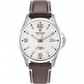 Diese Swiss Military Hanowa Uhr hat ein Edelstahl Gehäuse mit einem Durchmesser von 40 mm und ist mit einem Armband aus Leder versehen. In der Uhr arbeitet ein Ronda Uhrwerk. Das Glas der Uhr besteht aus Sapphir - Glas.
