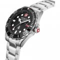 Die Uhr ist wasserdicht bis 20 ATM. Dies bedeutet, dass die Uhr zum Tauchen geeignet ist.. Die Uhr wird mit Swiss Military 3+2 geliefert.