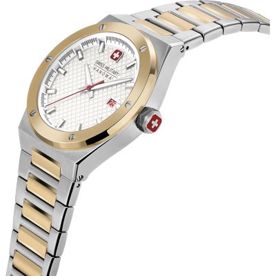 Die Uhr ist wasserdicht bis 10 ATM. Das bedeutet, dass die Uhr zum Schwimmen geeignet ist.. Die Uhr wird mit Swiss Military 3+2 geliefert.