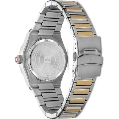 Diese Swiss Military Hanowa Uhr hat ein Edelstahl Gehäuse mit einem Durchmesser von 32 mm und ist mit einem Armband aus Edelstahl versehen. In der Uhr arbeitet ein Ronda Uhrwerk. Das Glas der Uhr besteht aus Sapphir - Glas.