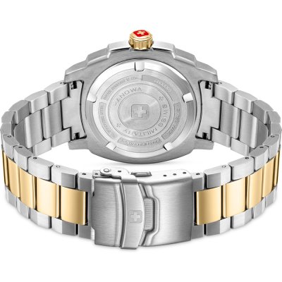 Diese Swiss Military Hanowa Uhr hat ein Edelstahl Gehäuse mit einem Durchmesser von 40 mm und ist mit einem Armband aus Edelstahl versehen. In der Uhr arbeitet ein Ronda Uhrwerk. Das Glas der Uhr besteht aus Sapphir - Glas.