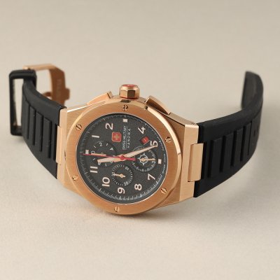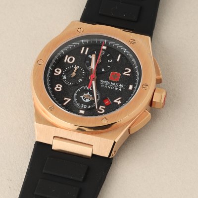 Diese Swiss Military Hanowa Uhr hat ein Edelstahl Gehäuse mit einem Durchmesser von 43 mm und ist mit einem Armband aus Kautschuk versehen. In der Uhr arbeitet ein Ronda Uhrwerk. Das Glas der Uhr besteht aus Sapphir - Glas.