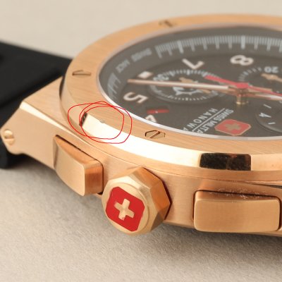 Zurückgesendetes Produkt mit einer Delle an der Lünette (bei 4 Uhr).