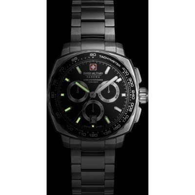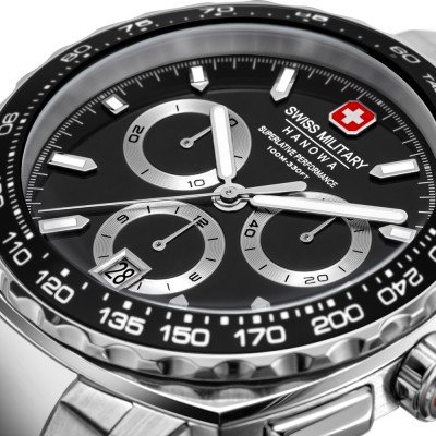 Diese Swiss Military Hanowa Uhr hat ein Edelstahl Gehäuse mit einem Durchmesser von 41 mm und ist mit einem Armband aus Edelstahl versehen. In der Uhr arbeitet ein Ronda Uhrwerk. Das Glas der Uhr besteht aus Sapphir - Glas.