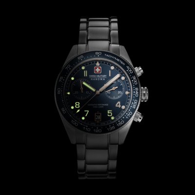 Die Uhr ist wasserdicht bis 10 ATM. Das bedeutet, dass die Uhr zum Schwimmen geeignet ist.. Die Uhr wird mit Swiss Military 3+2 geliefert.