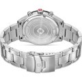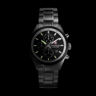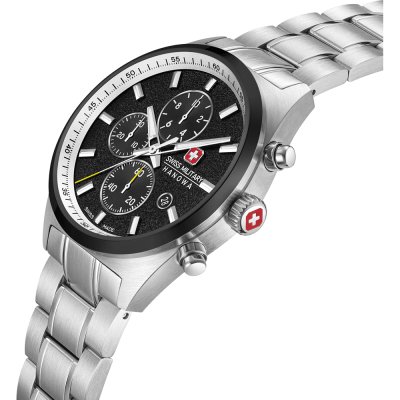 Diese Swiss Military Hanowa Uhr hat ein Edelstahl Gehäuse mit einem Durchmesser von 43 mm und ist mit einem Armband aus Edelstahl versehen. In der Uhr arbeitet ein Ronda Uhrwerk. Das Glas der Uhr besteht aus Sapphir - Glas.