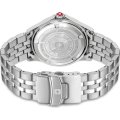 Diese Swiss Military Hanowa Uhr hat ein Edelstahl Gehäuse mit einem Durchmesser von 42 mm und ist mit einem Armband aus Edelstahl versehen. In der Uhr arbeitet ein Ronda Uhrwerk. Das Glas der Uhr besteht aus Sapphir - Glas.