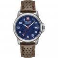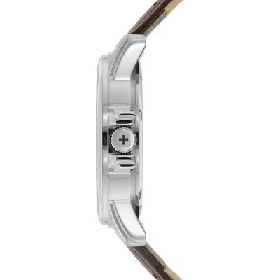 Diese Swiss Military Hanowa Uhr hat ein Edelstahl Gehäuse mit einem Durchmesser von 39 mm und ist mit einem Armband aus Leder versehen. In der Uhr arbeitet ein Ronda Uhrwerk. Das Glas der Uhr besteht aus Sapphir - Glas.