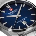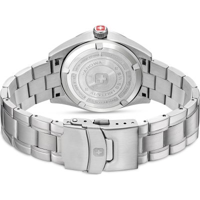 Diese Swiss Military Hanowa Uhr hat ein Edelstahl Gehäuse mit einem Durchmesser von 42 mm und ist mit einem Armband aus Edelstahl versehen. In der Uhr arbeitet ein Ronda Uhrwerk. Das Glas der Uhr besteht aus Sapphir - Glas.