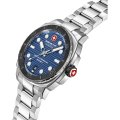 Diese Swiss Military Hanowa Uhr hat ein Edelstahl Gehäuse mit einem Durchmesser von 40 mm und ist mit einem Armband aus Edelstahl versehen. In der Uhr arbeitet ein Ronda Uhrwerk. Das Glas der Uhr besteht aus Sapphir - Glas.