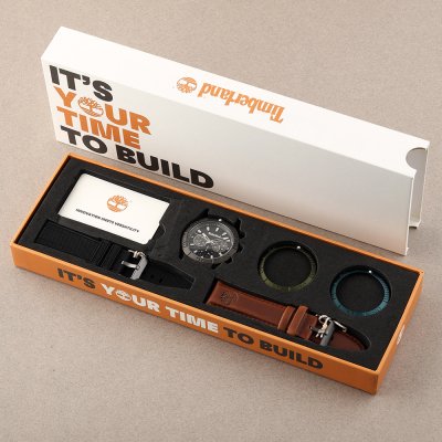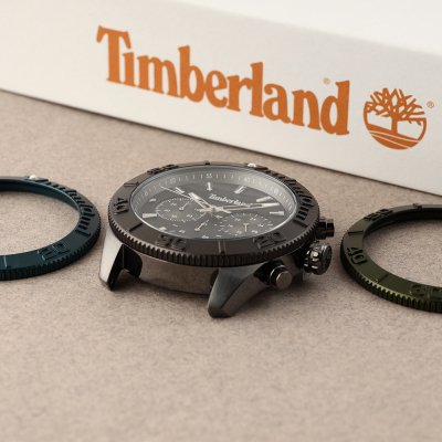 Diese Timberland Uhr hat ein Edelstahl Gehäuse mit einem Durchmesser von 44 mm und ist mit einem Armband aus Leder versehen. In der Uhr arbeitet ein Seiko Instruments Inc. Uhrwerk. Das Glas der Uhr besteht aus Mineral - Glas.