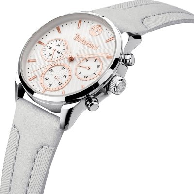Diese Timberland Uhr hat ein Edelstahl Gehäuse mit einem Durchmesser von 38 mm und ist mit einem Armband aus Leder versehen. In der Uhr arbeitet ein Seiko Instruments Inc. Uhrwerk. Das Glas der Uhr besteht aus Mineral - Glas.