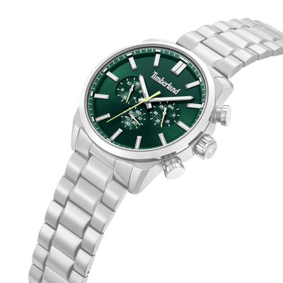 Diese Timberland Uhr hat ein Edelstahl Gehäuse mit einem Durchmesser von 46 mm und ist mit einem Armband aus Edelstahl versehen. In der Uhr arbeitet ein Seiko Uhrwerk. Das Glas der Uhr besteht aus Mineral - Glas.