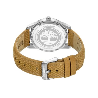 Diese Timberland Uhr hat ein Edelstahl Gehäuse mit einem Durchmesser von 42 mm und ist mit einem Armband aus Leder versehen. In der Uhr arbeitet ein Seiko Instruments Inc. Uhrwerk. Das Glas der Uhr besteht aus Mineral - Glas.
