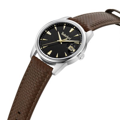 Diese Timberland Uhr hat ein Edelstahl Gehäuse mit einem Durchmesser von 42 mm und ist mit einem Armband aus Leder versehen. In der Uhr arbeitet ein Seiko Instruments Inc. Uhrwerk. Das Glas der Uhr besteht aus Mineral - Glas.