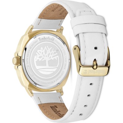 Diese Timberland Uhr hat ein Edelstahl Gehäuse mit einem Durchmesser von 38 mm und ist mit einem Armband aus Leder versehen.