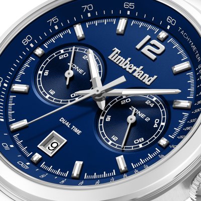 Diese Timberland Uhr hat ein Edelstahl Gehäuse mit einem Durchmesser von 45 mm und ist mit einem Armband aus Edelstahl versehen. In der Uhr arbeitet ein Seiko Instruments Inc. Uhrwerk. Das Glas der Uhr besteht aus Mineral - Glas.