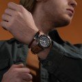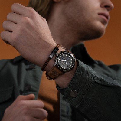 Diese Timberland Uhr hat ein Edelstahl Gehäuse mit einem Durchmesser von 44 mm und ist mit einem Armband aus Leder versehen. In der Uhr arbeitet ein Seiko Instruments Inc. Uhrwerk. Das Glas der Uhr besteht aus Mineral - Glas.