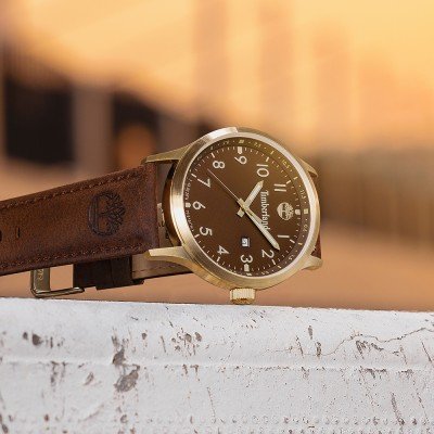 Diese Timberland Uhr hat ein Edelstahl Gehäuse mit einem Durchmesser von 45 mm und ist mit einem Armband aus Leder versehen. In der Uhr arbeitet ein Miyota Uhrwerk. Das Glas der Uhr besteht aus Mineral - Glas.